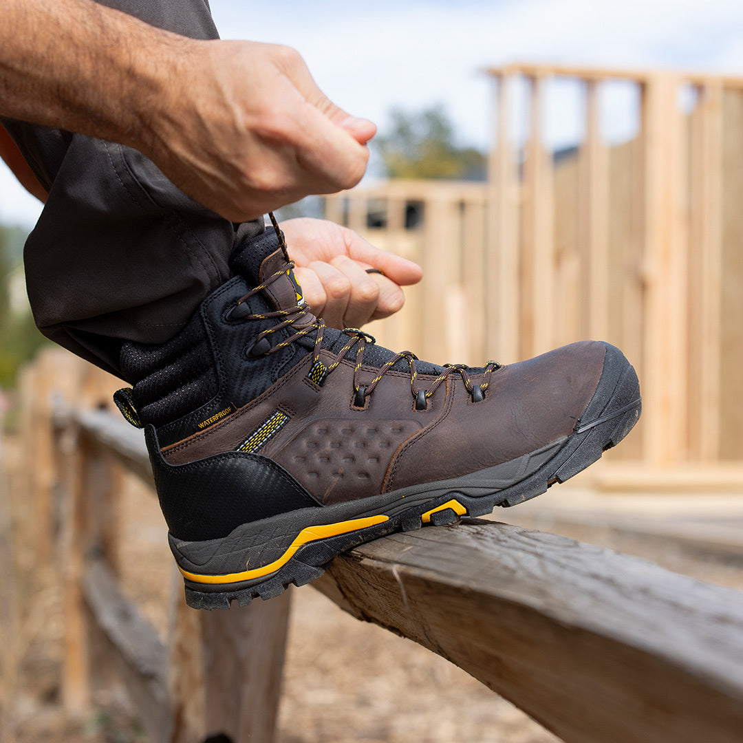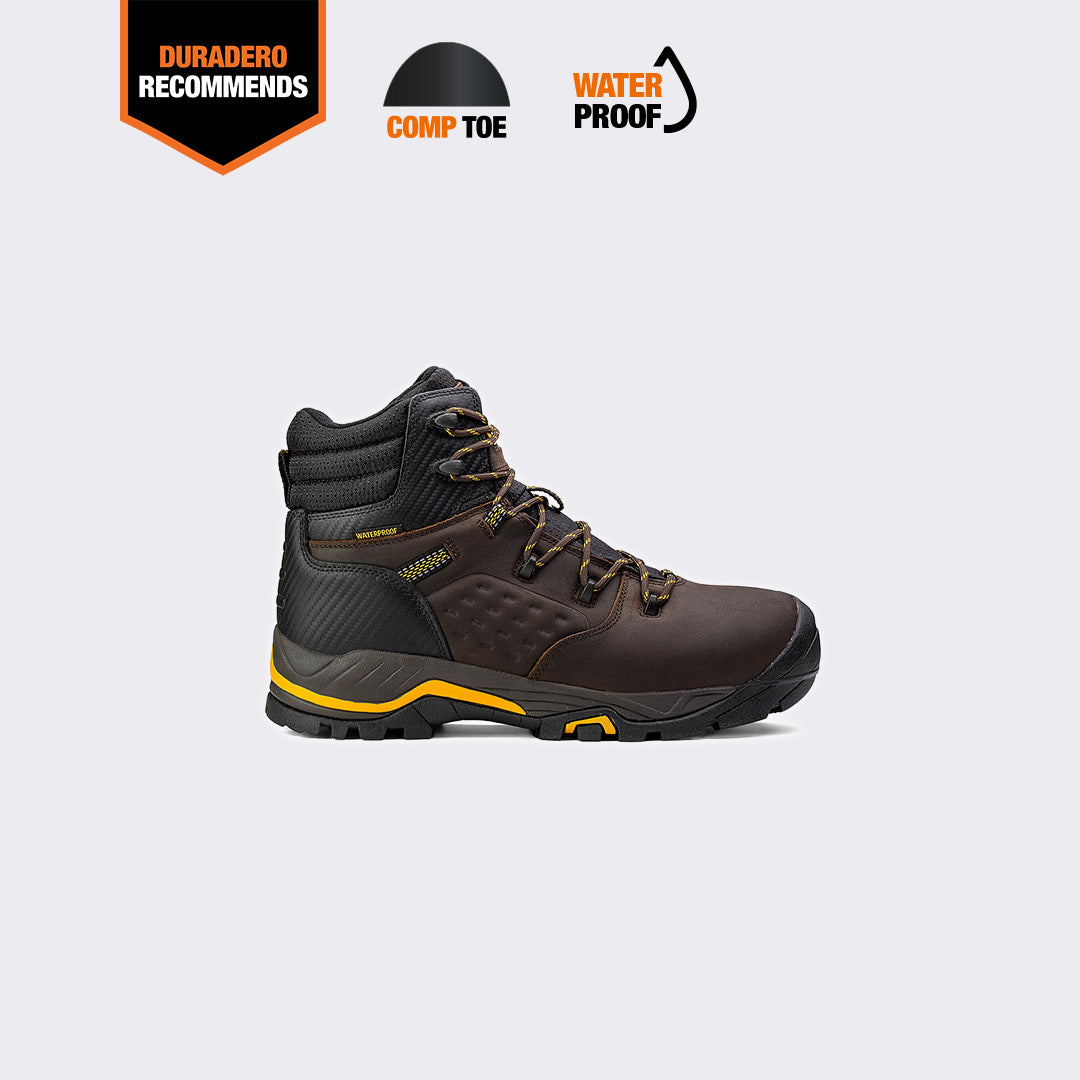 The Olympic 6" Comp Toe Men’s Waterproof Work Boot in Brown is built for lightweight safety, comfort, and durability on the job. Balancing industrial performance with rugged protection, this boot keeps your feet secure in any conditions. The waterproof breathable membrane ensures dryness, while the full-grain leather upper offers long-lasting durability and a classic look. With a cushioned PU footbed, electrical hazard protection, and metal-free construction, the Olympic Boot delivers all-day comfort and safety without added weight. Engineered for demanding work environments, this boot provides the reliable performance you need to power through tough days with confidence.